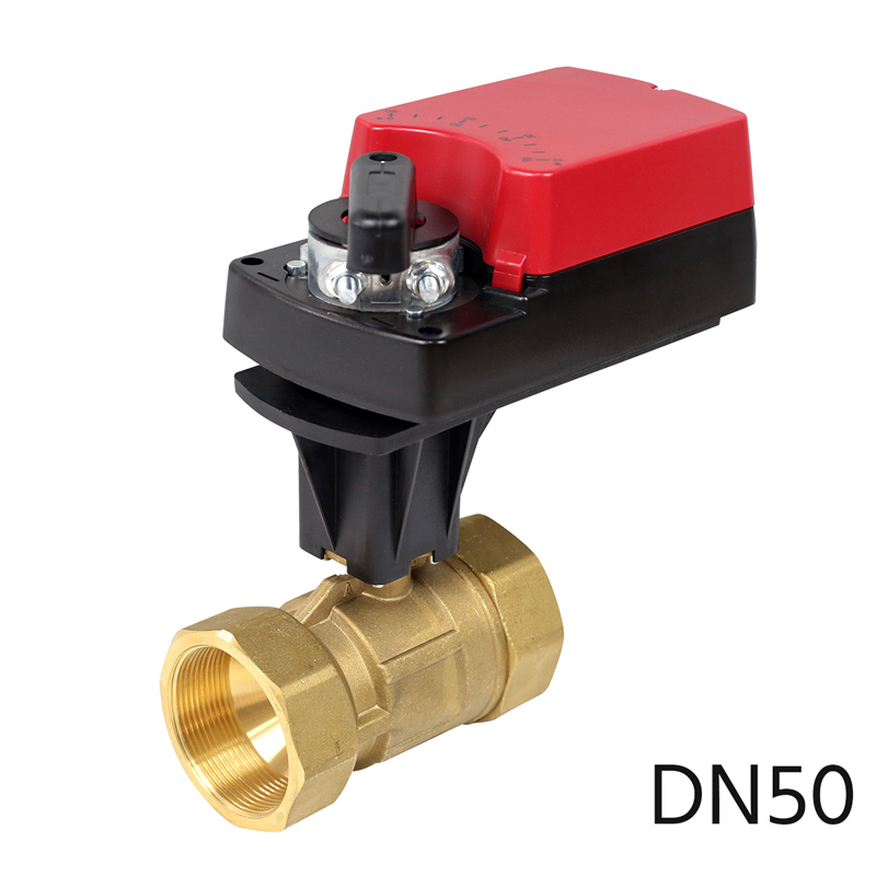 Шаровый кран двухходовой латунный Ду50 с регулирующим приводом CFEBV-DN50-2