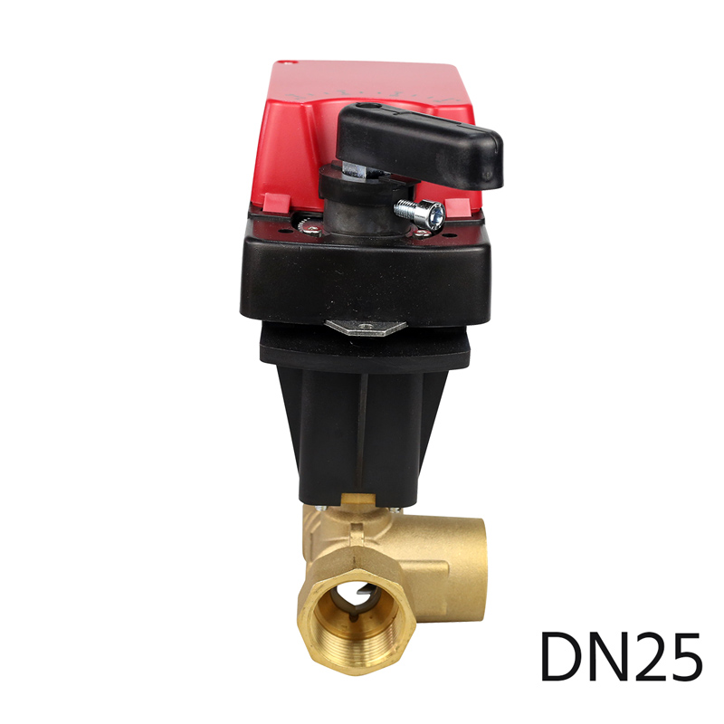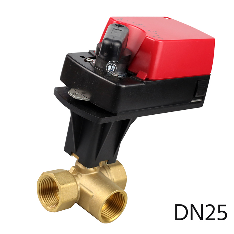 Шаровый кран трехходовой латунный Ду25 с регулирующим приводом CFEBV-DN25-3